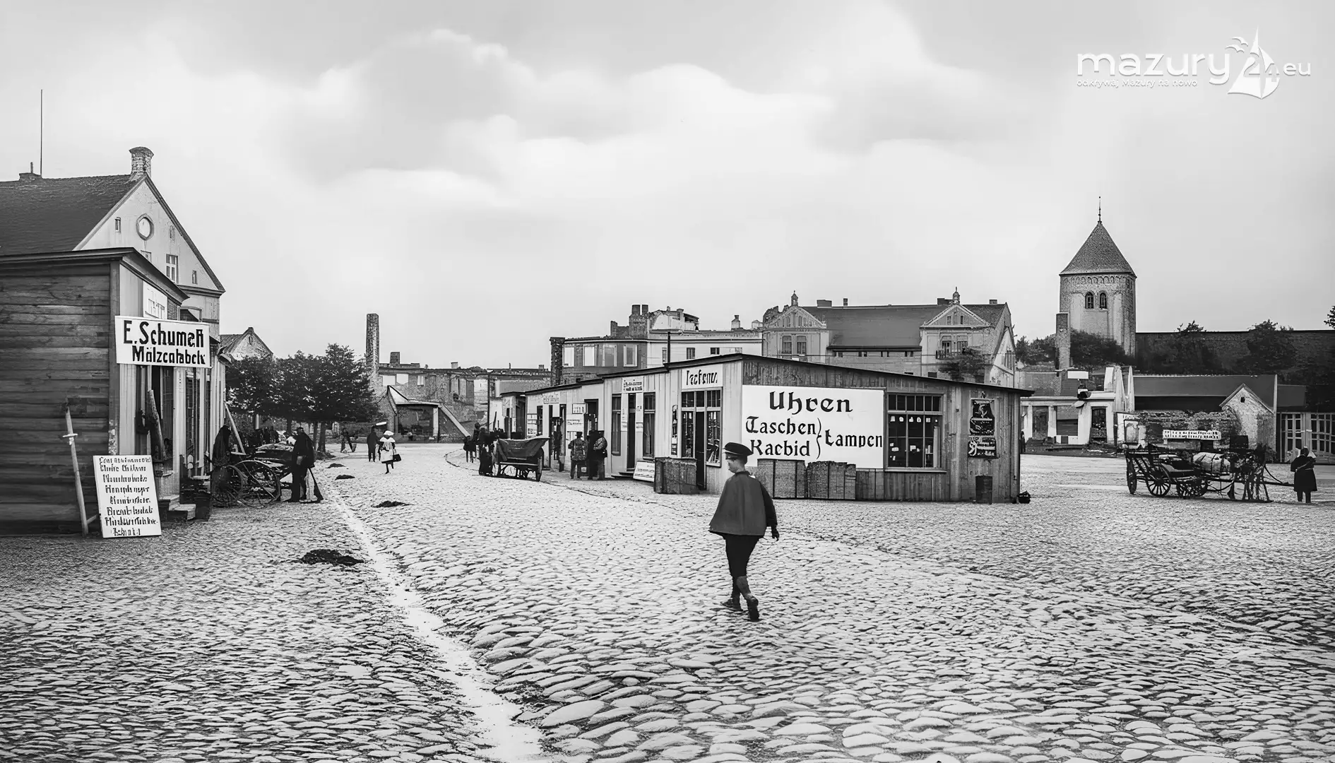 Gołdap na przełomie XIX i pierwszej połowy XX wieku jawi się jako tętniące życiem mazurskie miasteczko pogranicza, w którym przenikały się wpływy kulturowe, handlowe i administracyjne Prus Wschodnich. Archiwalne fotografie z lat 1880–1940 ukazują uporządkowaną zabudowę z charakterystycznymi kamienicami, rynek pełniący funkcję centrum społecznego oraz codzienność mieszkańców związaną z rzemiosłem, handlem i życiem religijnym. Widoczne są także ślady nowoczesności – rozwój infrastruktury, komunikacji i instytucji publicznych – które stopniowo zmieniały oblicze miasta. Galeria tych zdjęć stanowi cenne świadectwo historii Gołdapi, utrwalając atmosferę miasta na długo przed wojennymi zniszczeniami i powojennymi przemianami.