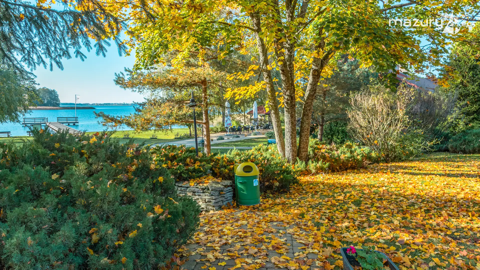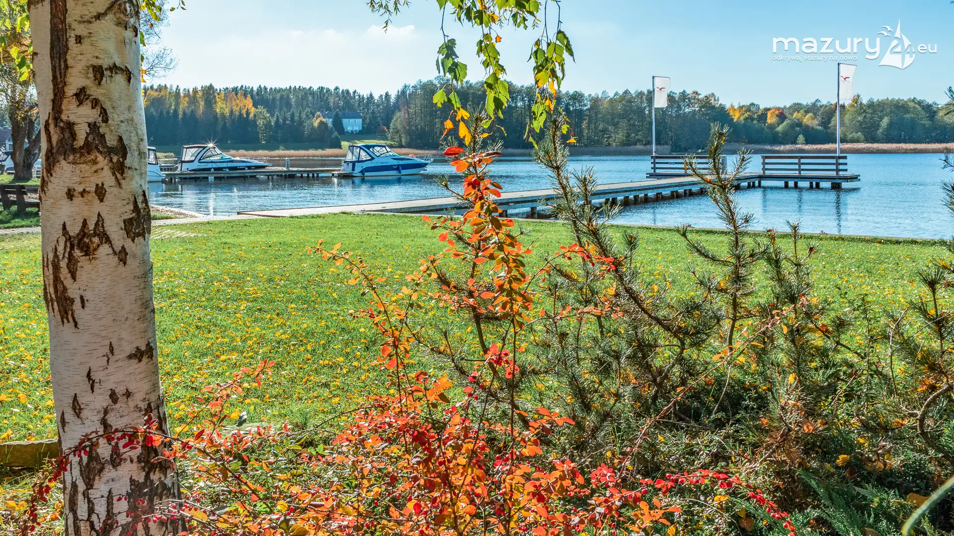 Gdy już odwiedza się dyniową wersję portu Ognisty Ptak, przy okazji łatwo dostrzec barwy jesieni, w których skąpało się to piękne miejsce. Szkoda, że sezon żeglarski nie kończy się wraz z ostatnim opadającym złoto-czerwonym liściem. Tak wielu z Was omija tak wiele mazurskiego piękna...