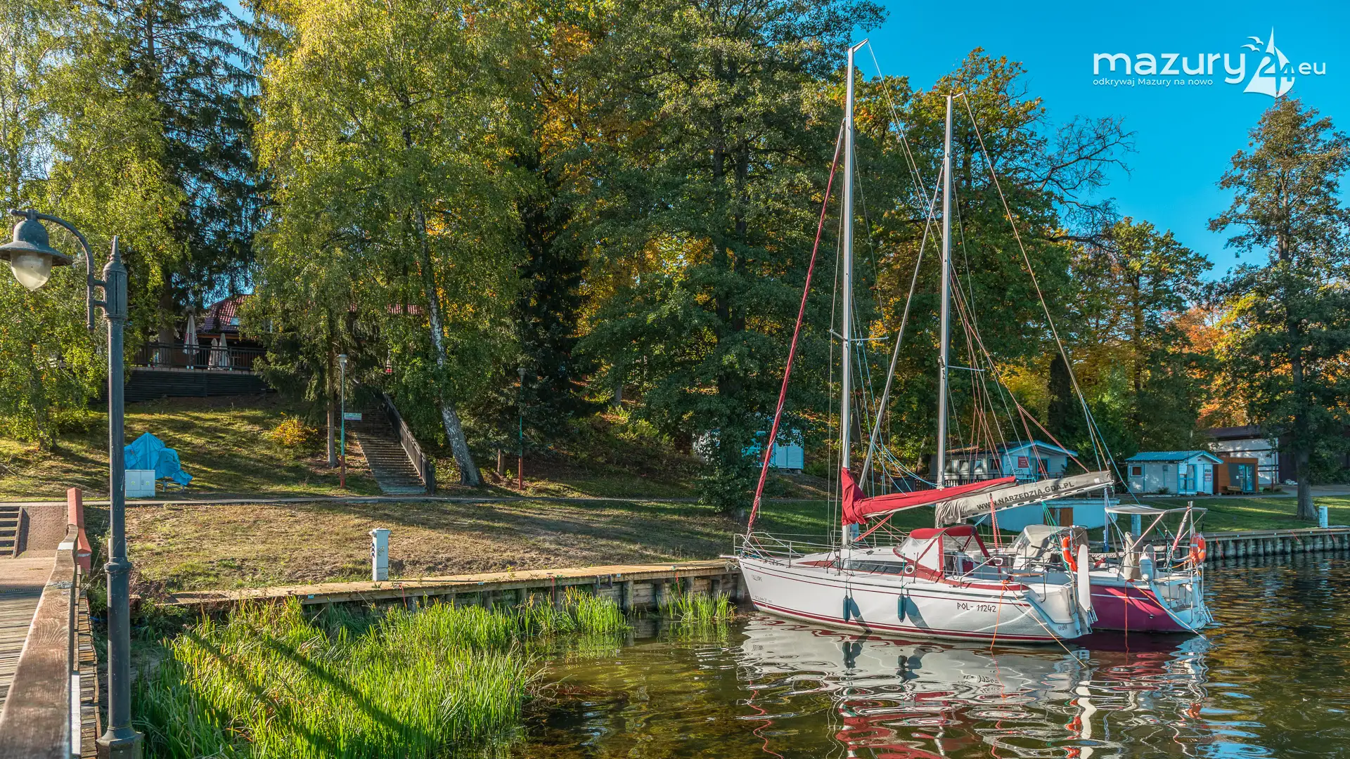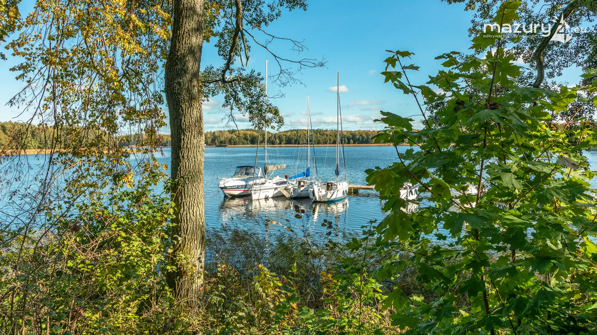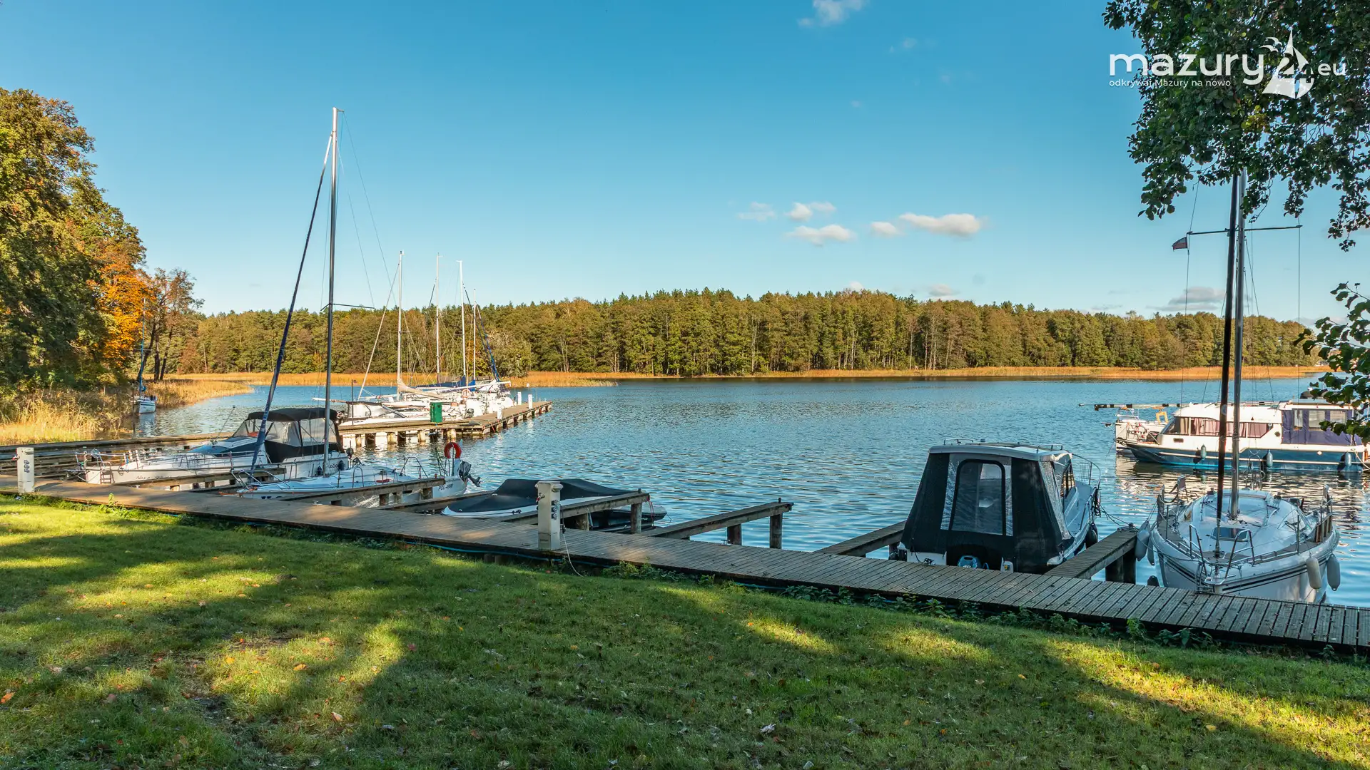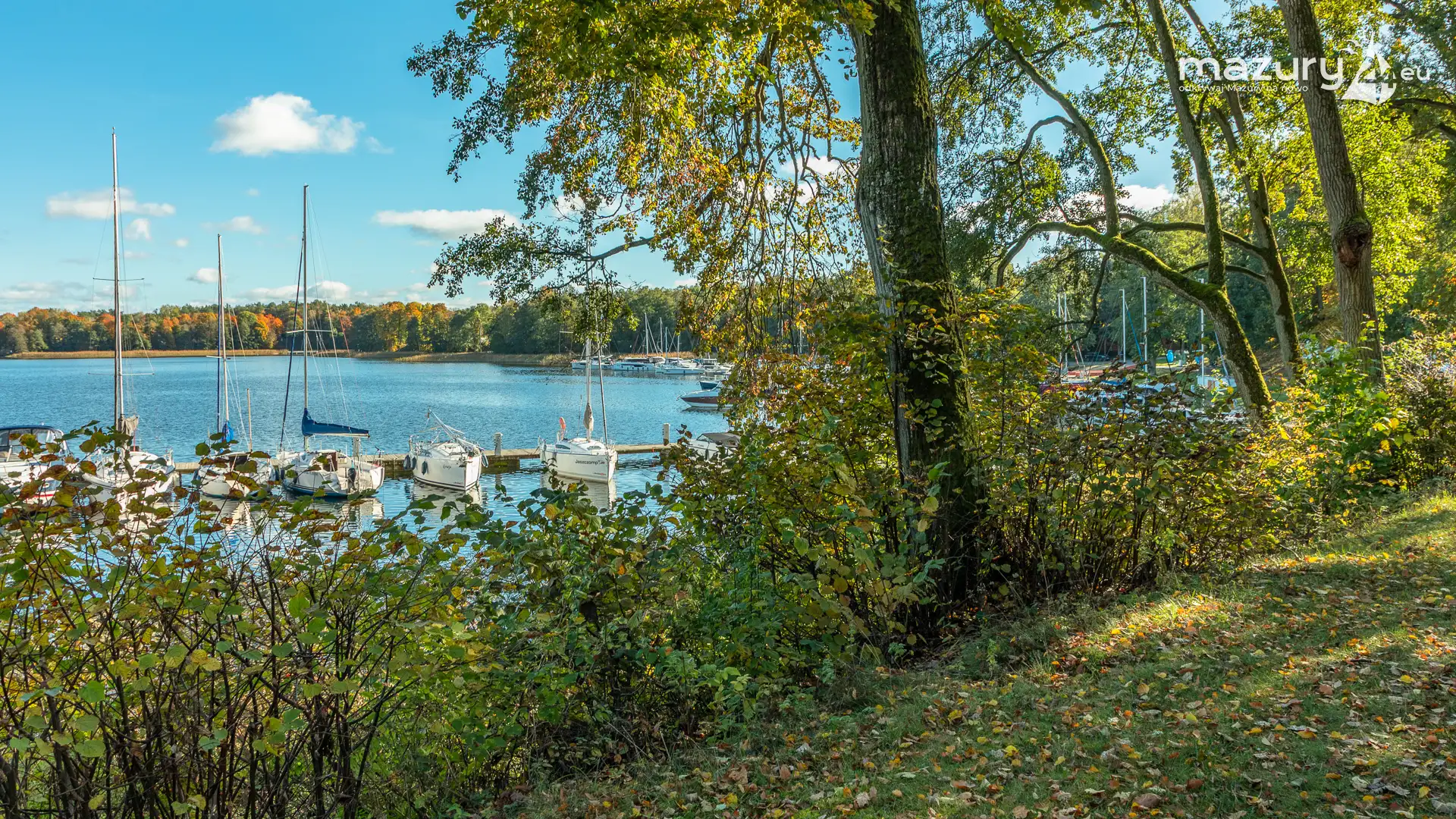 Na Mazurach nie brakuje miejsc, w których przyroda harmonijnie łączy się z działalnością człowieka. Jednym z nich jest port i ośrodek Łabędzi Ostrów w Pięknej Górze nad jeziorem Kisajno. Zobaczcie jesienną odsłonę tego miejsca – ostatnie jachty kołyszące się na wodzie, a wokół potężne dęby i buki ubrane w złociste barwy.