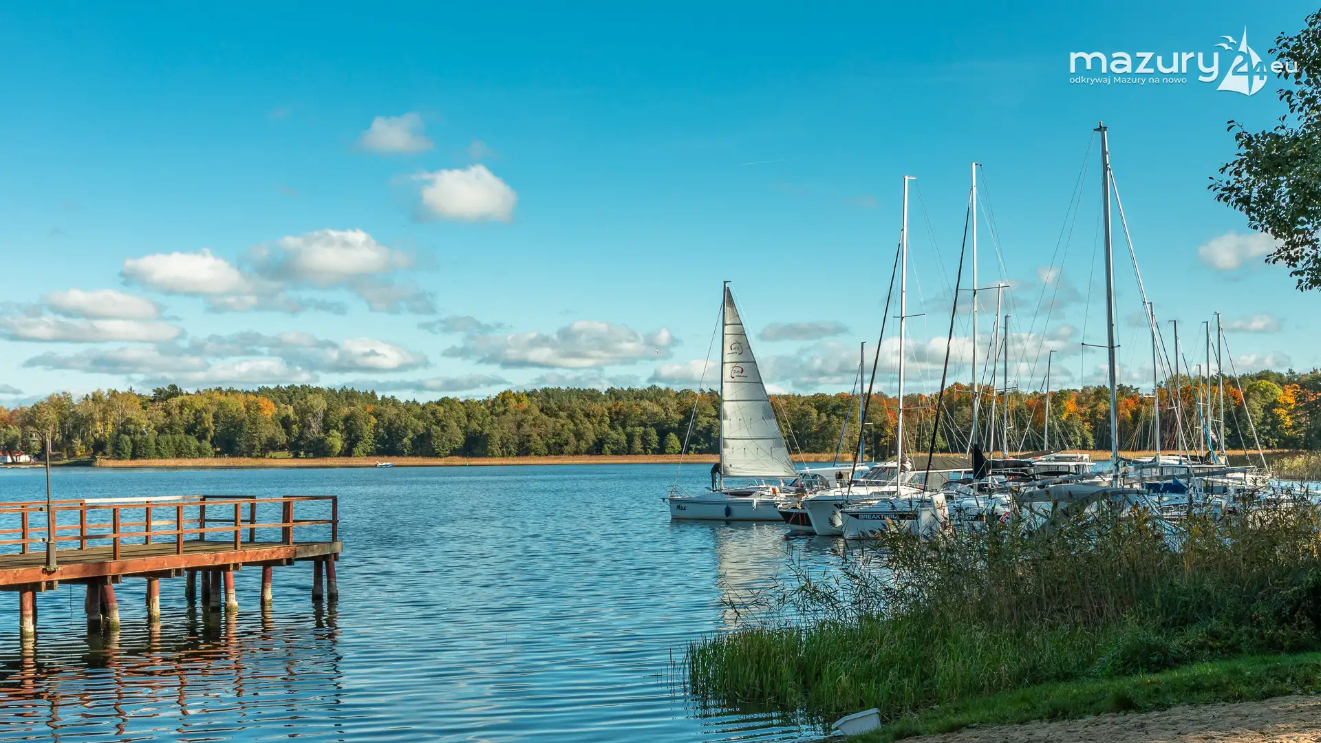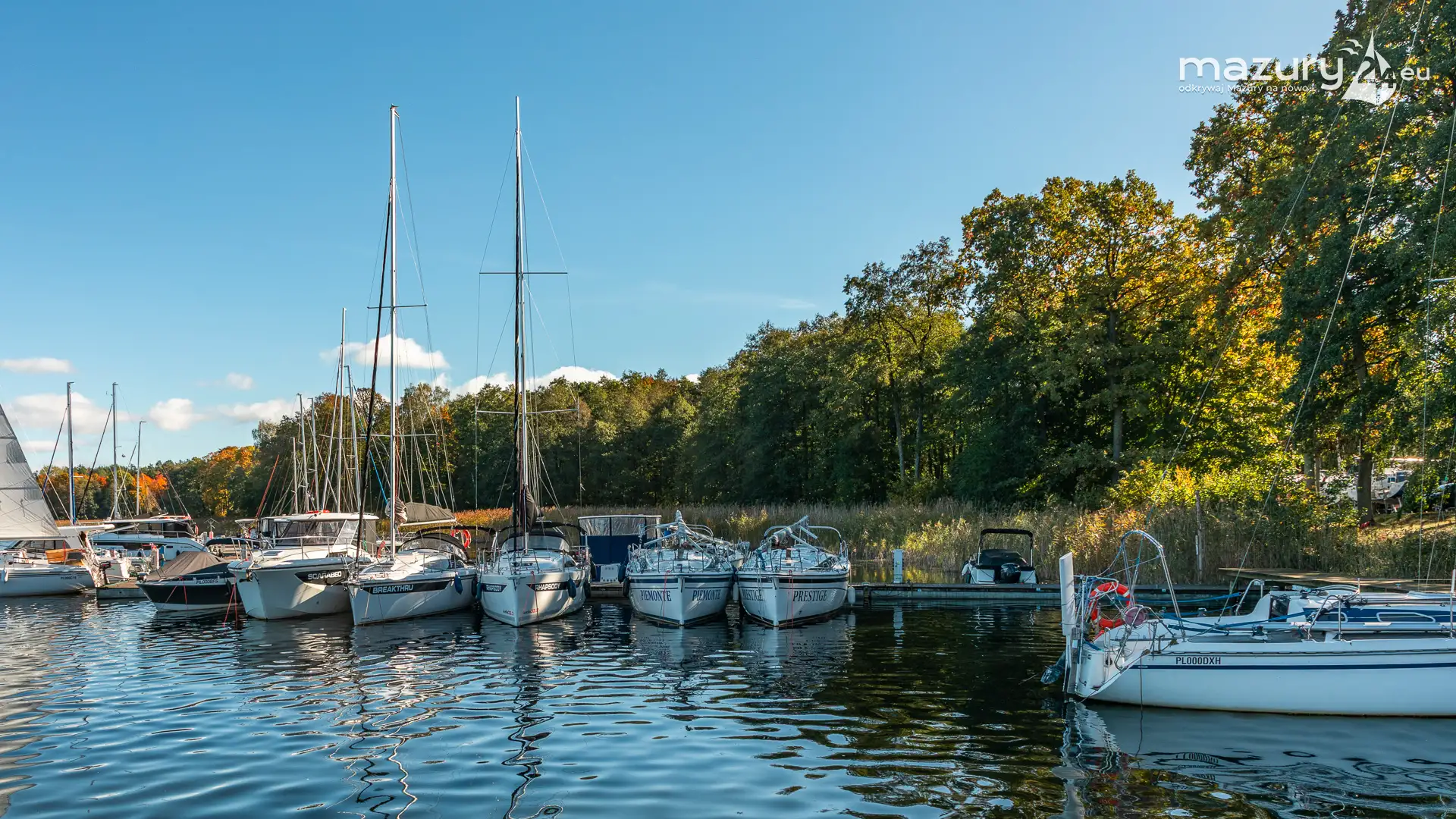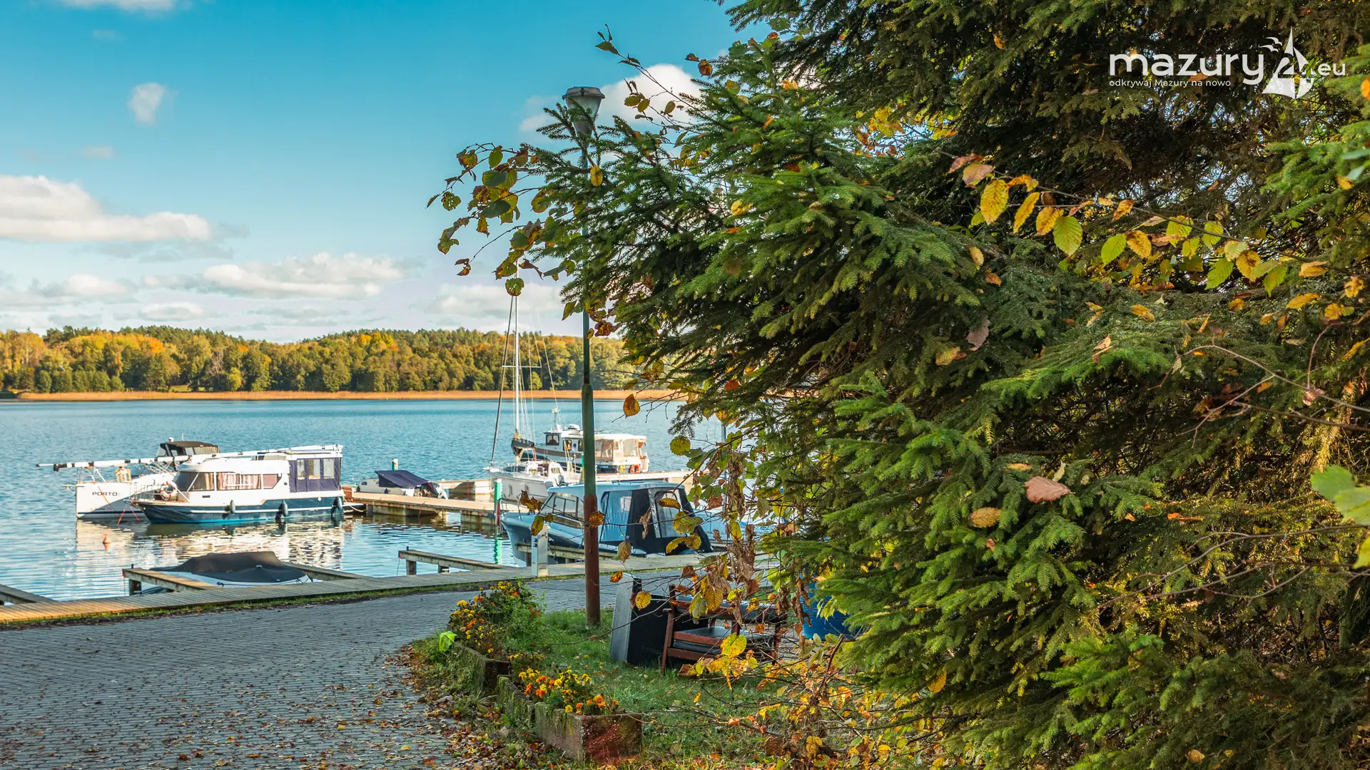 Na Mazurach nie brakuje miejsc, w których przyroda harmonijnie łączy się z działalnością człowieka. Jednym z nich jest port i ośrodek Łabędzi Ostrów w Pięknej Górze nad jeziorem Kisajno. Zobaczcie jesienną odsłonę tego miejsca – ostatnie jachty kołyszące się na wodzie, a wokół potężne dęby i buki ubrane w złociste barwy.