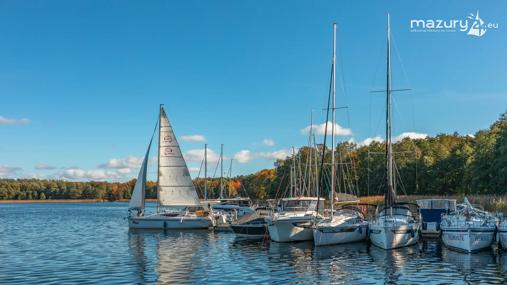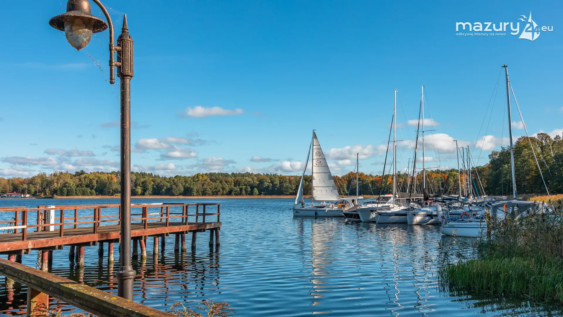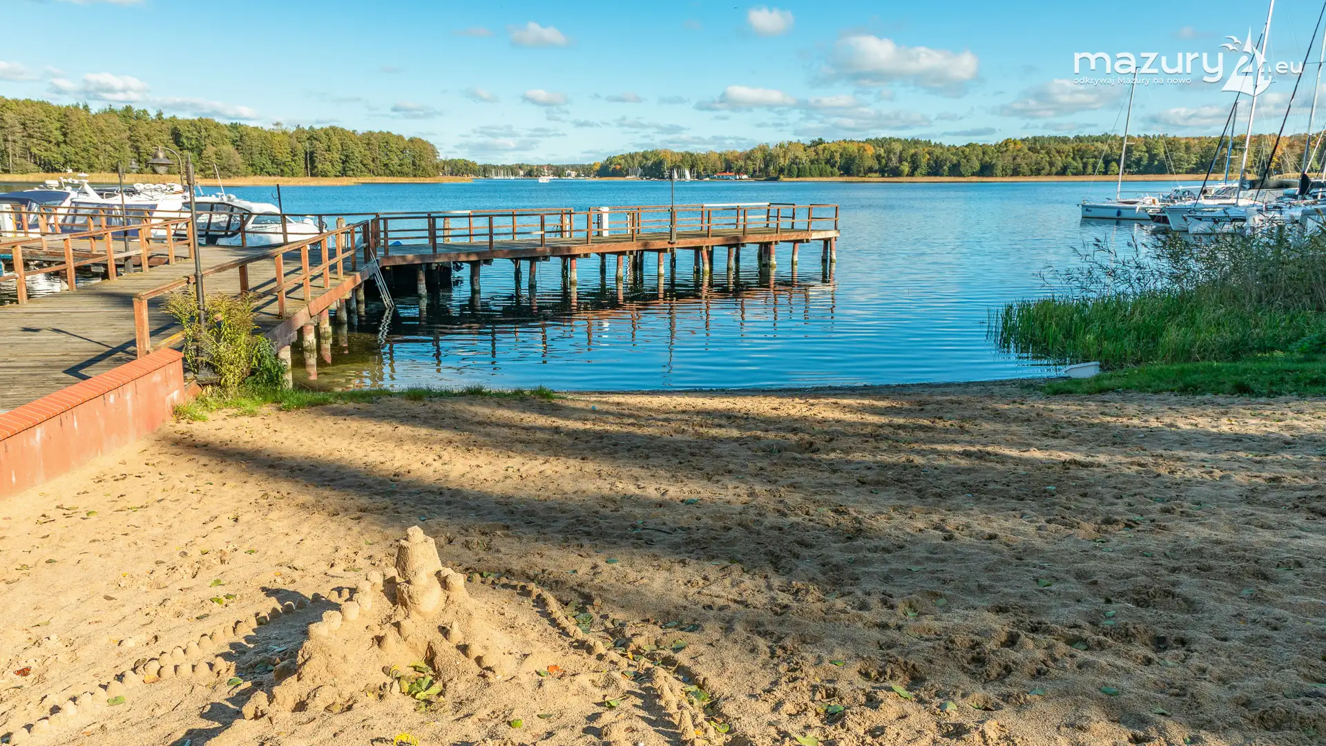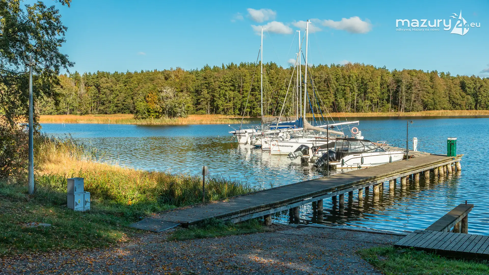 Na Mazurach nie brakuje miejsc, w których przyroda harmonijnie łączy się z działalnością człowieka. Jednym z nich jest port i ośrodek Łabędzi Ostrów w Pięknej Górze nad jeziorem Kisajno. Zobaczcie jesienną odsłonę tego miejsca – ostatnie jachty kołyszące się na wodzie, a wokół potężne dęby i buki ubrane w złociste barwy.
