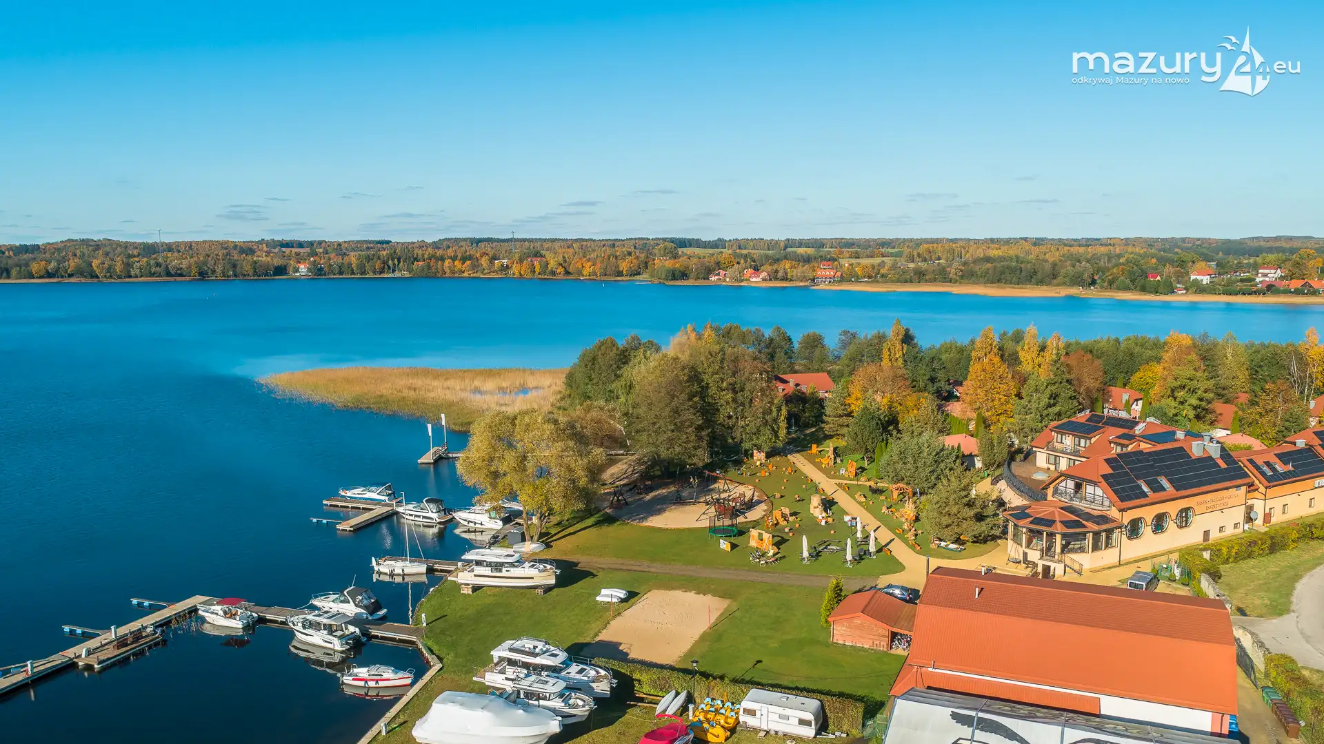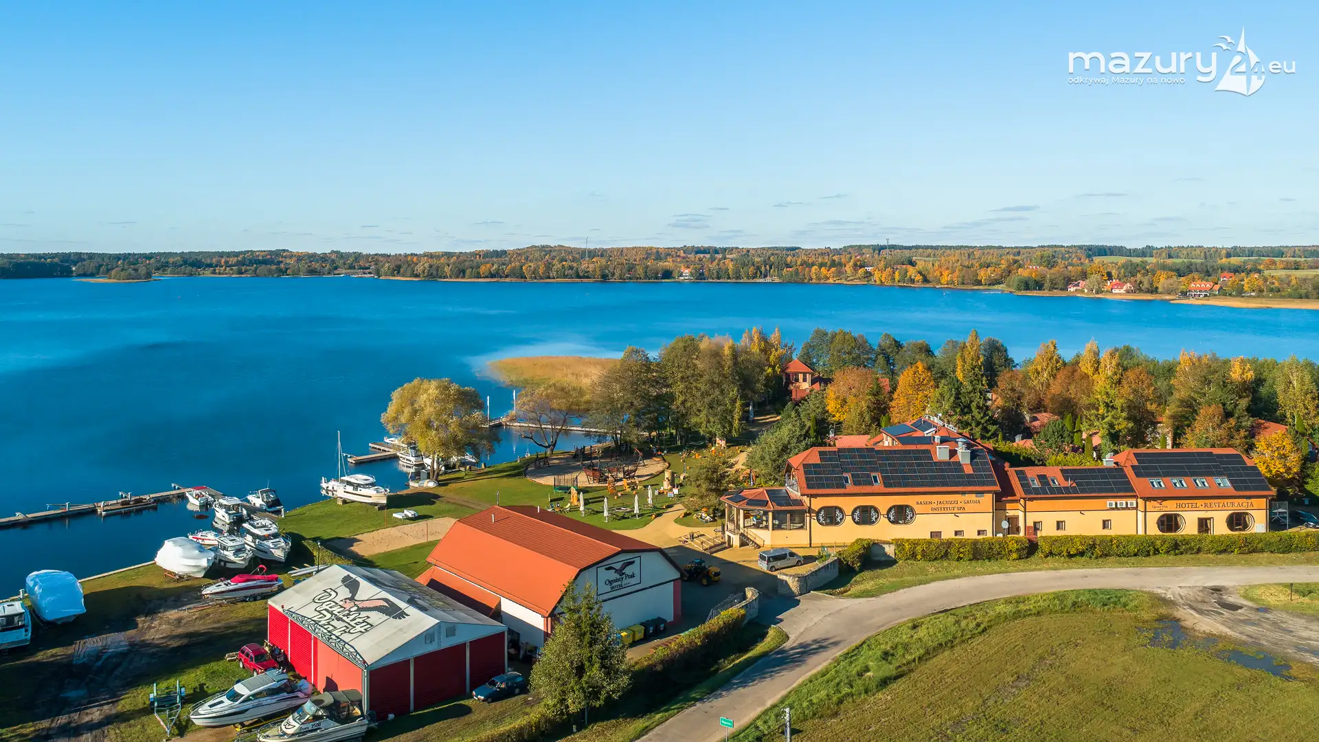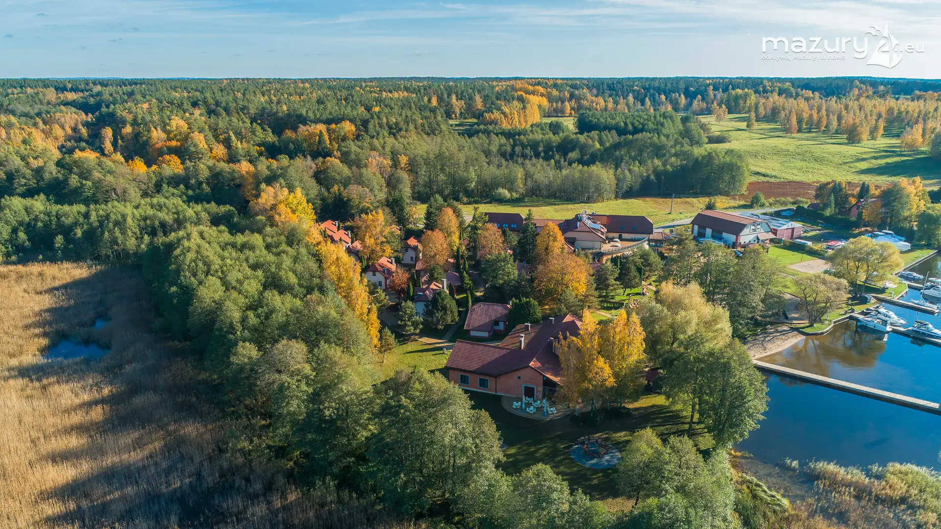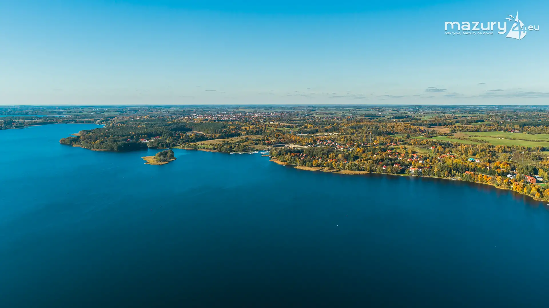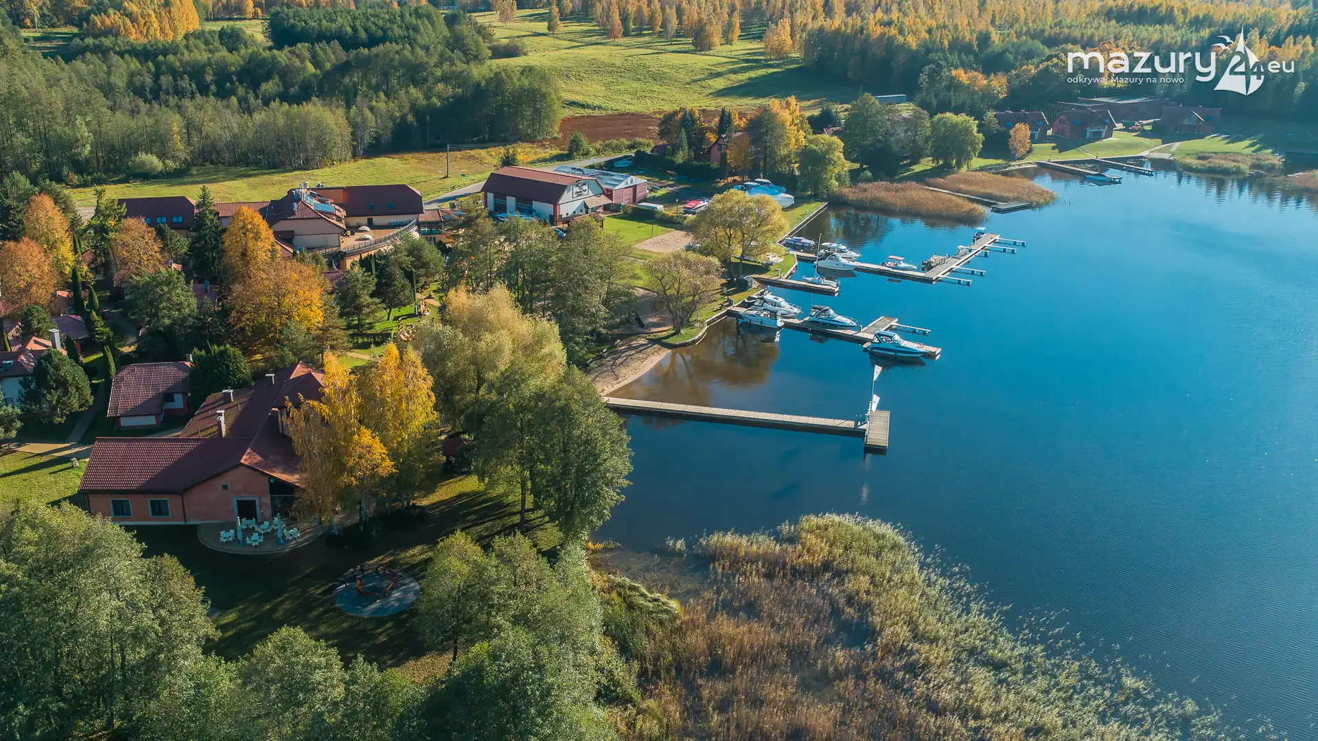 Kolejnym miejscem które złapaliśmy "z góry" podczas wybuchu jesiennych kolorów jest jezioro Święcajty i port Ognisty Ptak, leżący na północnej części szlaków WJM. Niby nic takiego, pokazywaliśmy Wam to miejsce wiele razy, w końcu udało nam się jednak złapać jesienną paletę barw. Piękne te Mazury jesienią...