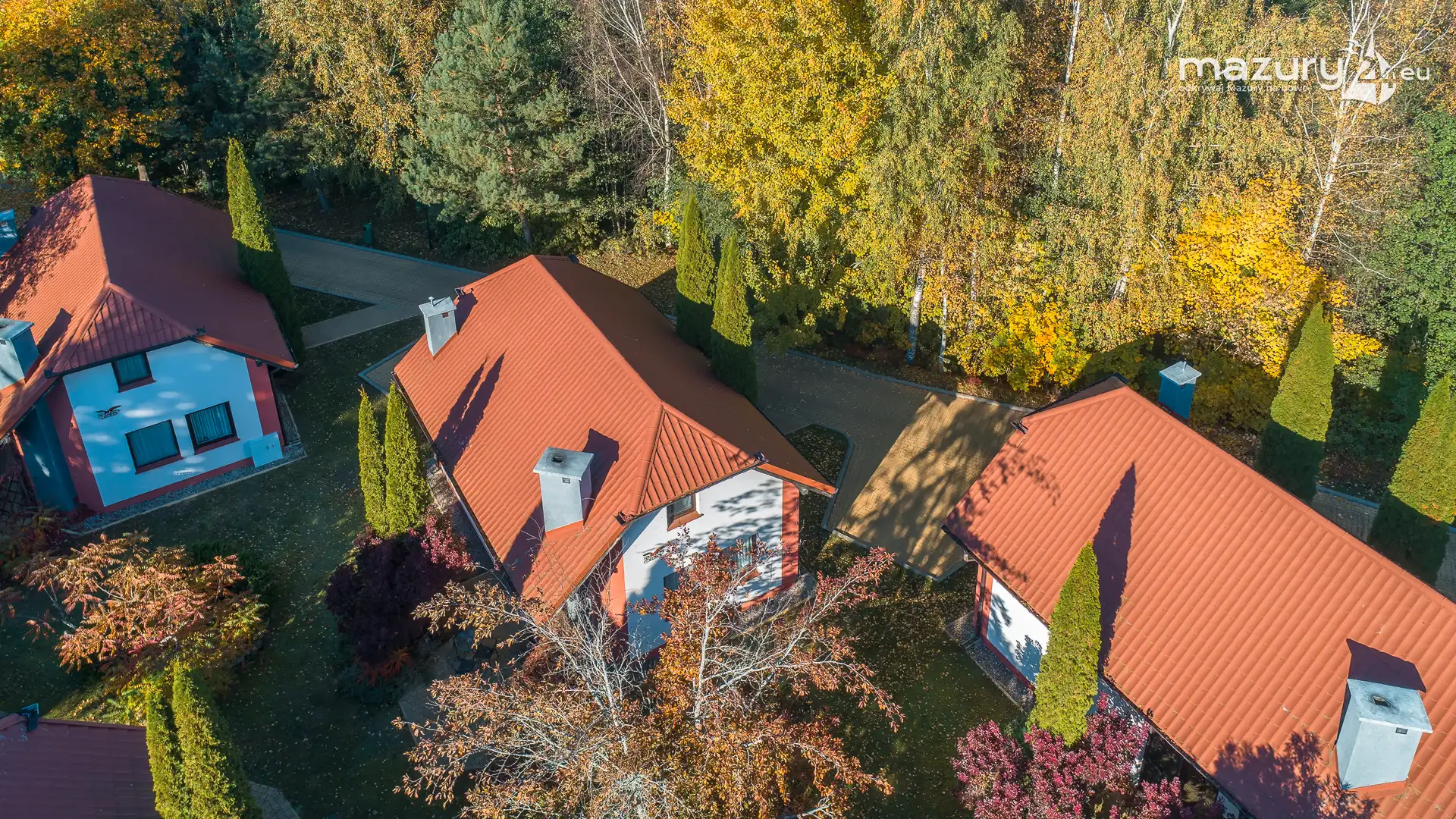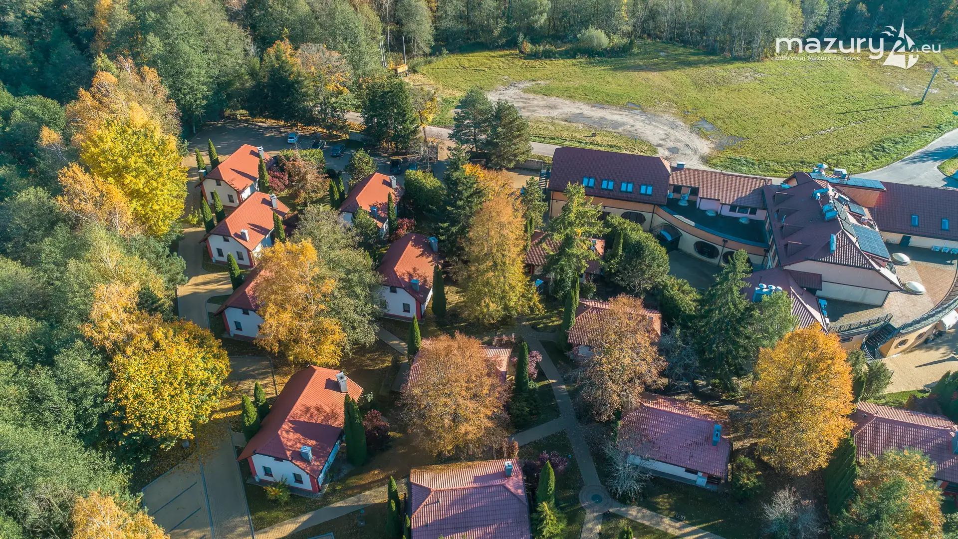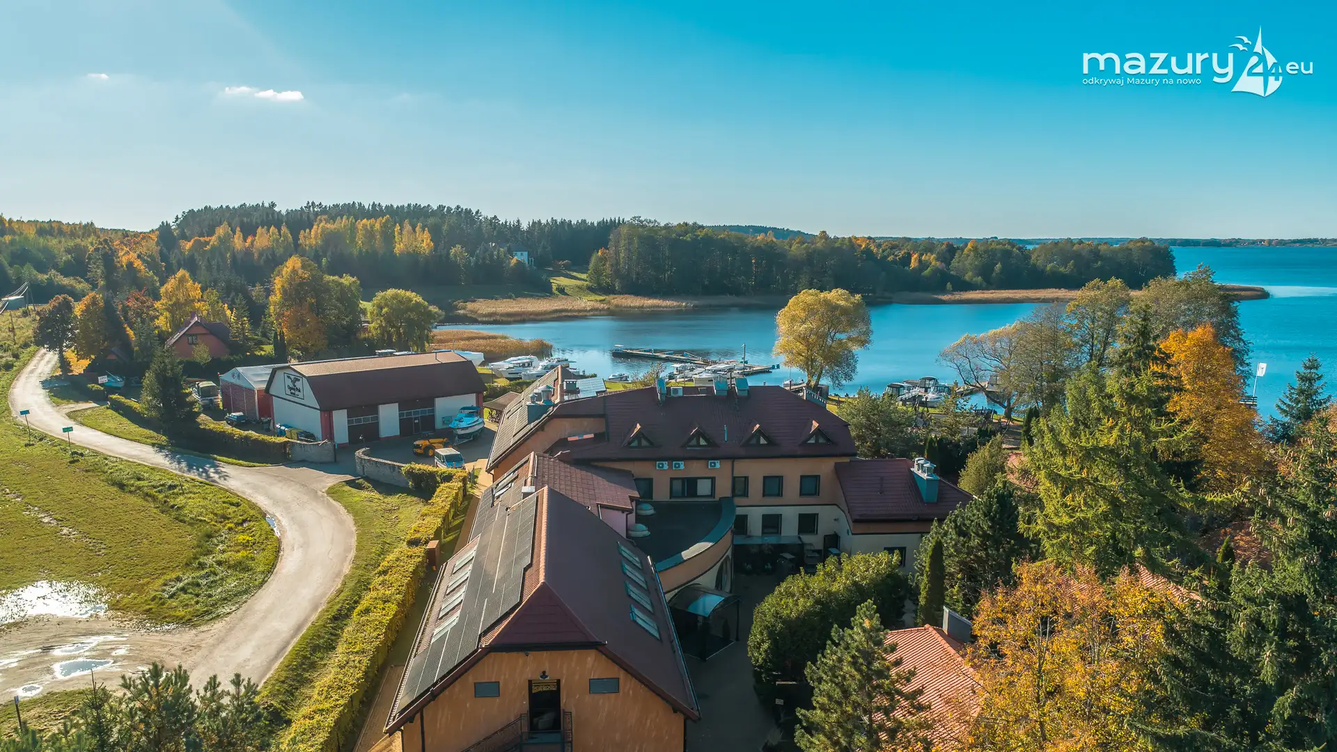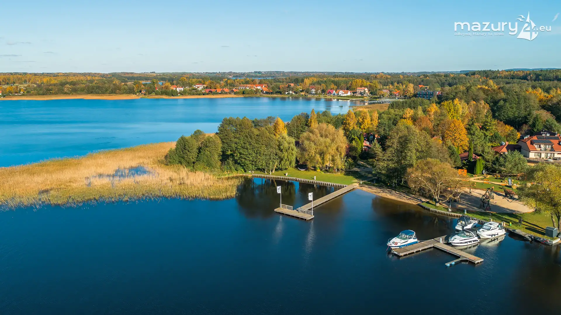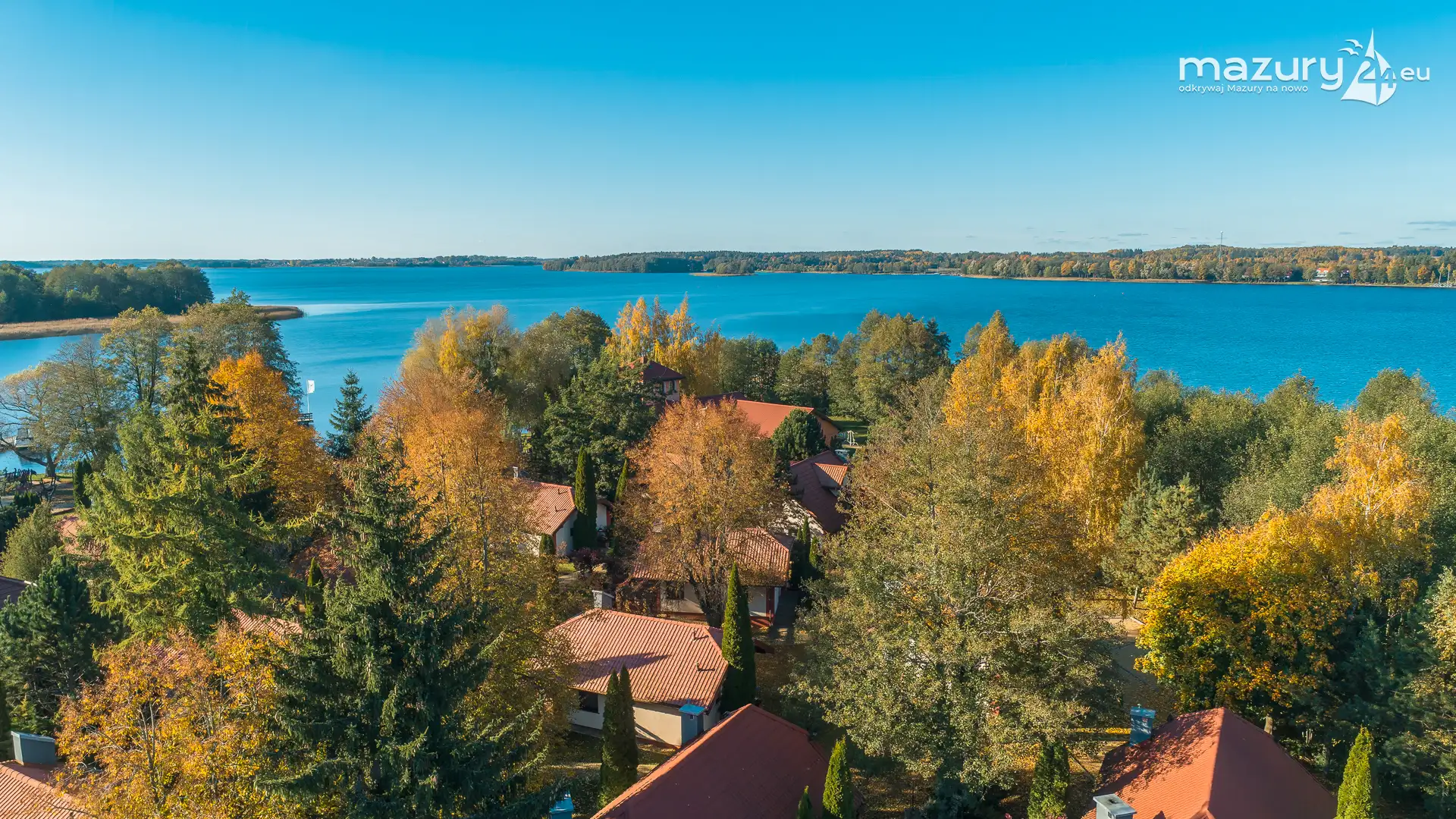Kolejnym miejscem które złapaliśmy "z góry" podczas wybuchu jesiennych kolorów jest jezioro Święcajty i port Ognisty Ptak, leżący na północnej części szlaków WJM. Niby nic takiego, pokazywaliśmy Wam to miejsce wiele razy, w końcu udało nam się jednak złapać jesienną paletę barw. Piękne te Mazury jesienią...