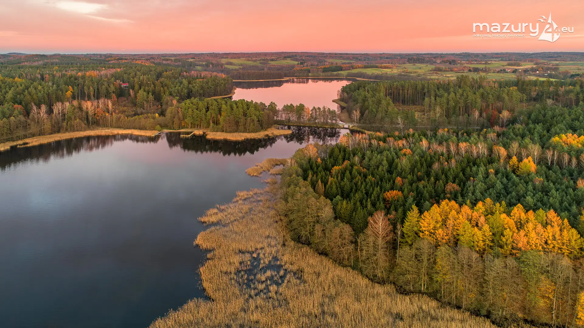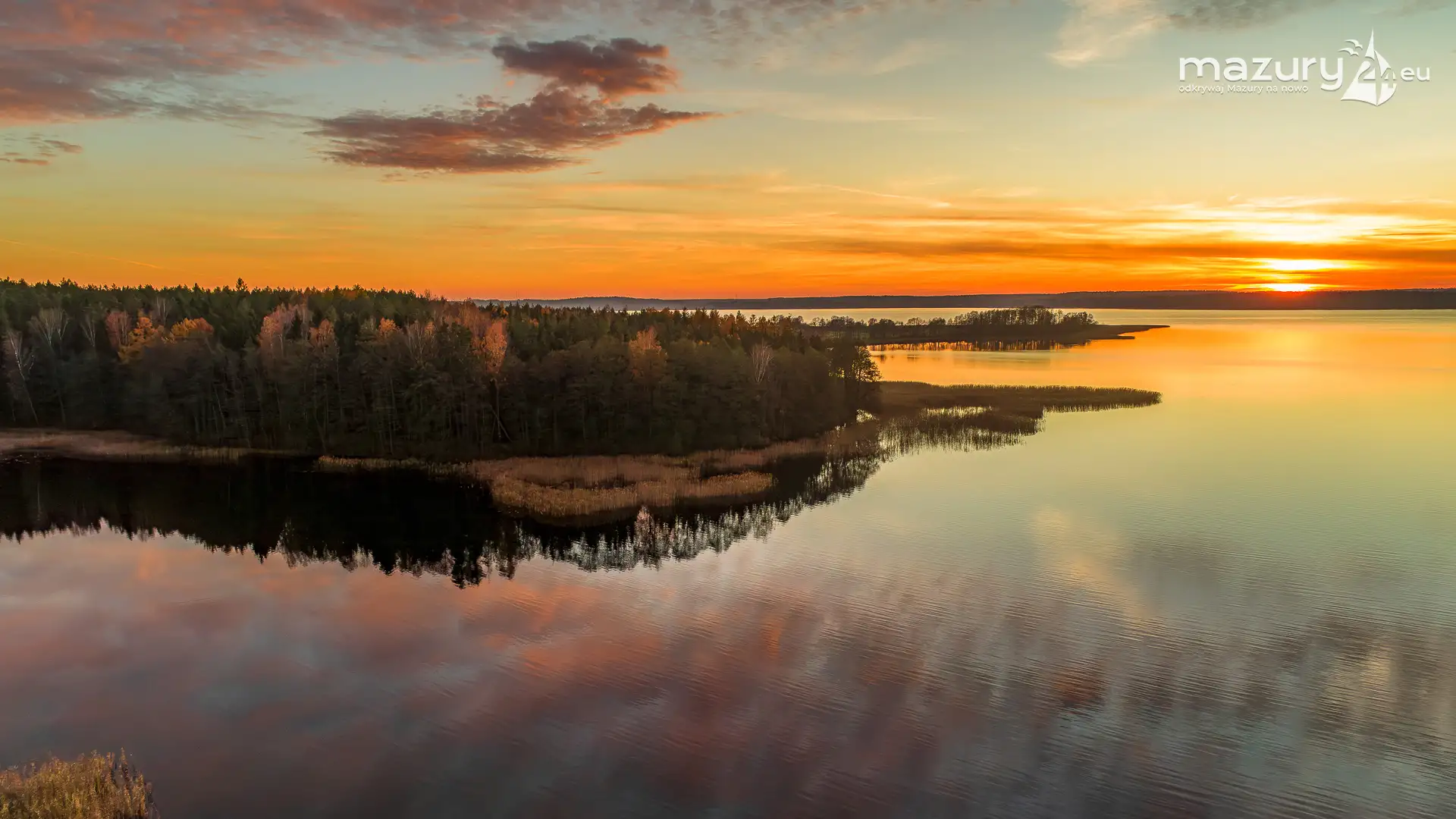 Kilka dni temu pokazaliśmy Wam ten sam zachód z "normalnej" wysokości. Ujęcia z drona mocno jednak zmieniają optykę i perspektywę, pokazując więcej odbić w wodzie, rzeczywisty rozmiar akwenu oraz często - troszeczkę inne kolory. Niemniej za nami magiczny zachód słońca, Mazury pod koniec jesieni i piękne wspomnienie gdy to słońce w końcu przedarło się przez mazurskie mgły...